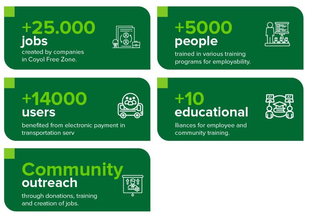 Since its creation, Coyol Free Zone has been characterized by its high environmental, social and economic commitment, constantly innovating in the pursuit of the benefit of its stakeholders.